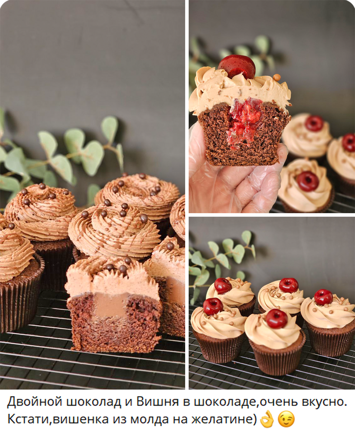 — Шоколадные капкейки с вишневой начинкой и кремом на молочном шоколаде