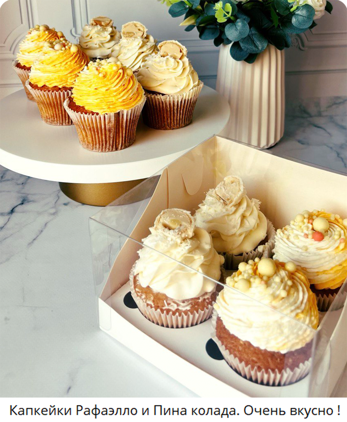 — Кокосовые капкейки с начинкой рафаэлло и кокосовым кремом